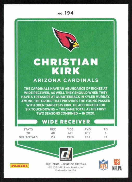 Christian Kirk 2021 Donruss Football # 194 Arizona Cardinals Base