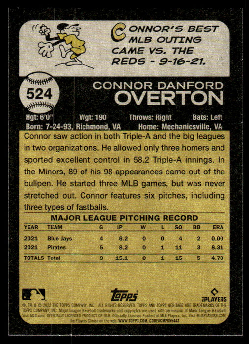 Connor Overton 2022 Topps Heritage High # 524 RC Base Cincinnati Reds